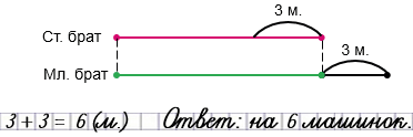 Ответ: на 6 машинок у младшего брата стало больше, чем у старшего.