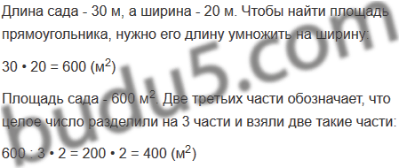 2) Сколько квадратных метров площади сада занимают яблони, если площадь под яблонями составляет две третьих части всей площади сада?