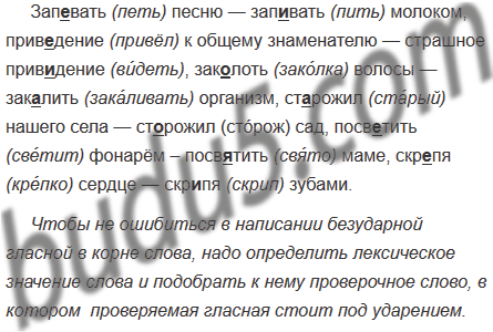 Зап..вать песню — зап..вать молоком, прив..дение к общему знаменателю — страшное прив..дение, зак..лоть волосы — зак..лить организм, ст..рожил нашего села — ст..рожил сад, посв..тить фонарём посв..тить маме, скр..пя сердце — скр..пя зубами.