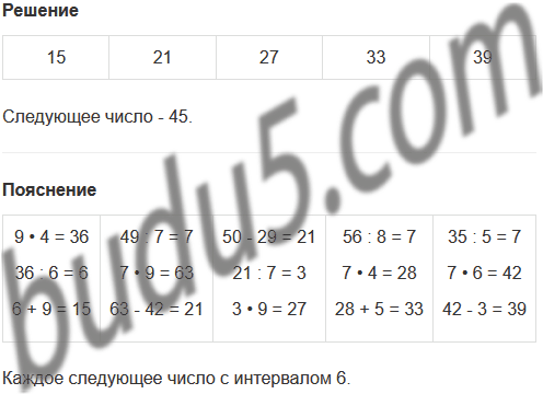 Задание № 5. Вычисли и найди следующее число в ряду ответов.