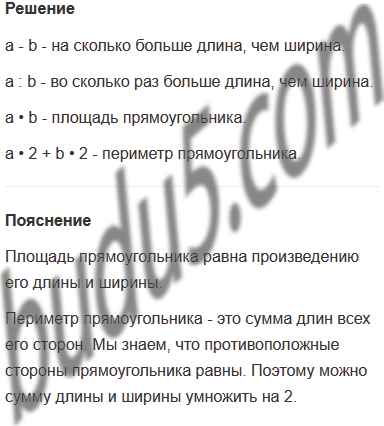 Задание № 6. Длина прямоугольника равна а см, а ширина - b см. Что означают выражения: