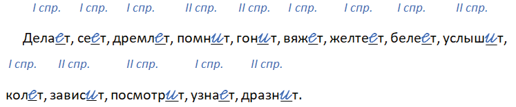 Дела_т, се_т, дремл_т, помн_т, гон_т, вяж_т, желте_т, беле_т, услыш_т, кол_т, завис_т, посмотр_т, узна_т, дразн_т.