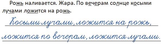 В предложении нам встретились следующие орфограммы: грамматический мягкий знак после шипящих (рожь), безударная гласная в корне ечерам – вечер), проверяемая непроизносимая согласная в корне слова (солнце – солнечный), ча-ща (лучами), правописание слов с чередованием гласных букв в корне (ложится).