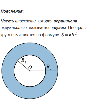 Найдите площадь кольца, ограниченного двумя окружностями с общим центром и радиусами R1 и R2, R1 < R2. Вычислите площадь кольца, если R1 = 1,5 см и R2 = 2,5 см.