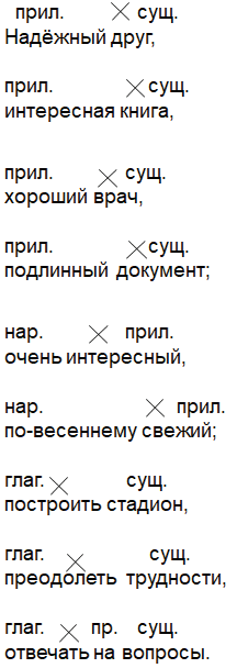 над главным словом в словосочетании всегда ставится крестик. Помните, что сочетание подлежащего и сказуемого не является словосочетанием.