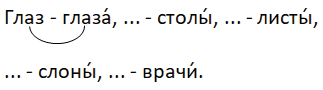 Мост — мосты́. Гриб — грибы́. Зме́и — змея́. По́ле — поля́. Во́лны — волна́. Тра́вы — трава́.