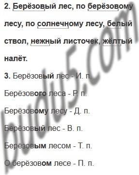 3. Попробуйте устно просклонять словосочетание берёзовый лес. Чётко проговаривайте окончания и проверьте себя по упражнению 58.
